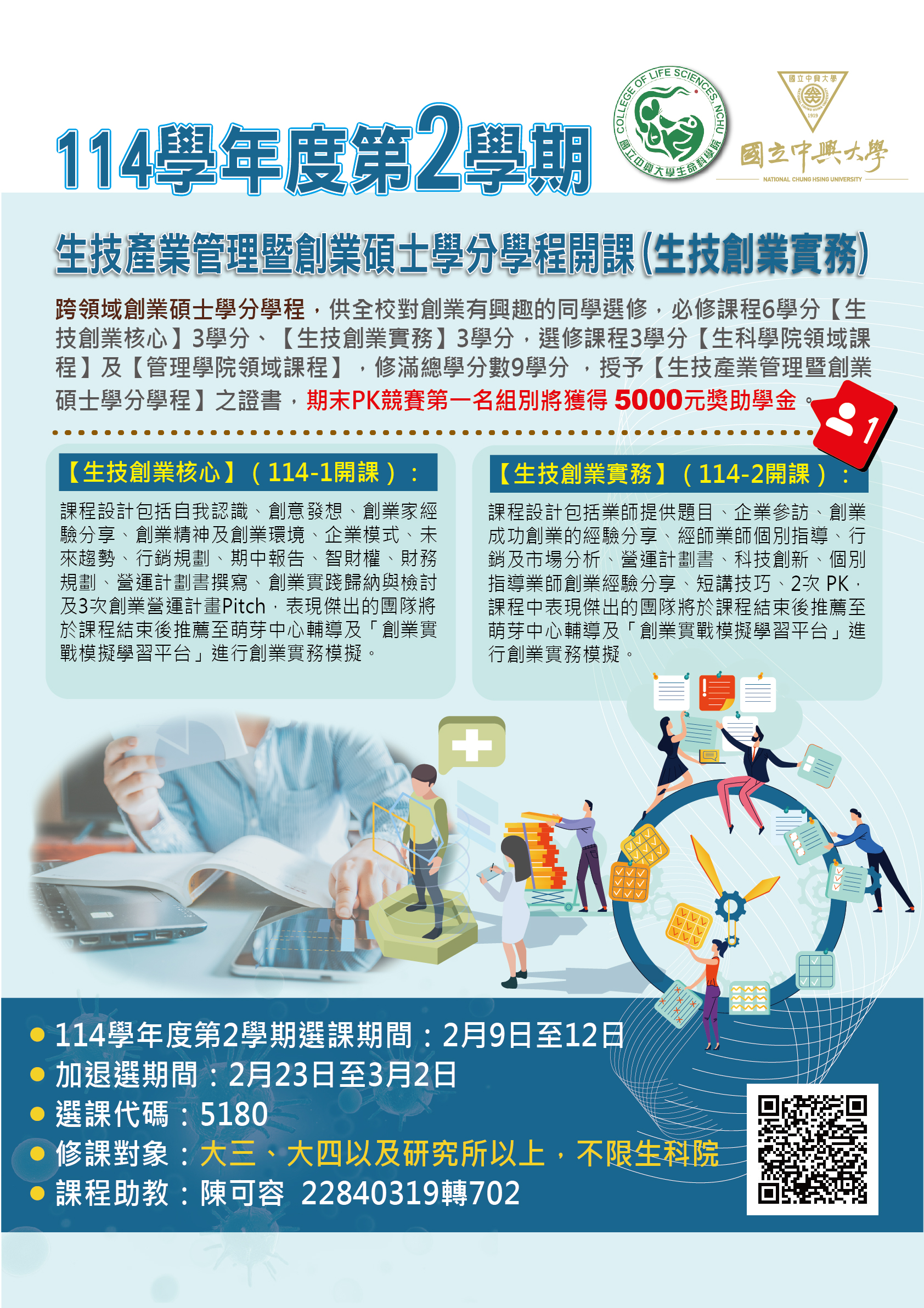 114學年度第2學期 生技產業管理暨創業碩士學分學程開課(生技創業實務)